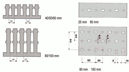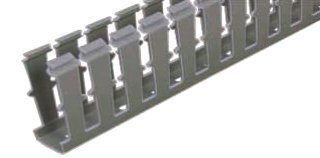 Canaline di cablaggio ad asole larghe Caratteristiche: Materia prima: PVC rigido autoestinguente (UL94 V0) Colorazione standard: GRIGIO RAL 7030 Lunghezza standard: barre da 2 metri Temperatura massima: esercizio in continuo 63°C Fornite già complete di coperchio asportabile