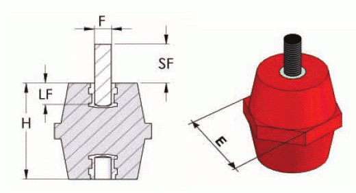 Gli isolatori portasbarre sono costruiti in massa poliestere con una percentuale di fibra di vetro del 18/20%. La colorazione standard è rosso RAL 3002 , fornibili anche in altri colori e con caratteristiche antiacido (minimi ordinabili da definire).